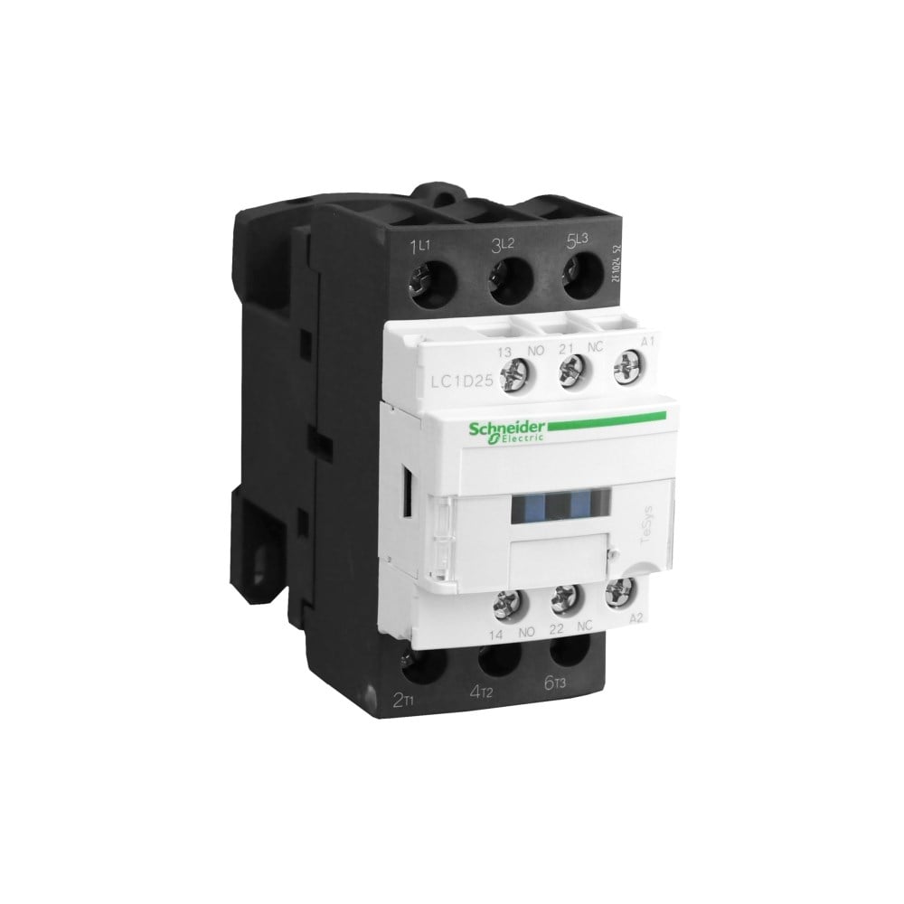 Contactors are electric switches used to lock and unlock different equipment from network.This is a contactor usable in alternative voltage (AC). His coil is 220V(but can be changed depending on the various specifics of the system).It has 3 poles with maximal power 15 kW and amperage 25A.