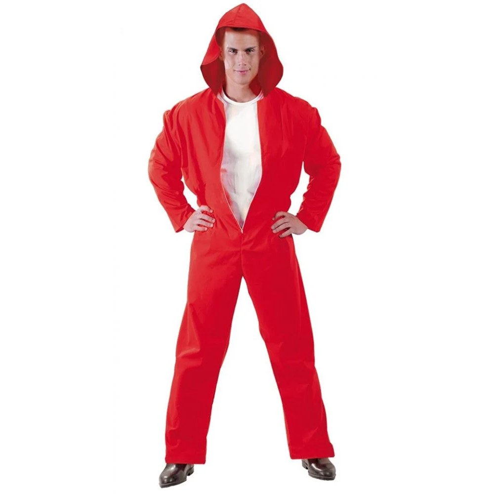 La Casa de Papel costume for adults, made of polyester material, in red color, size 46/48. The component material is soft to the touch and does not cause irritation to the skin. This product is suitable for use at parties such as Halloween, carnivals or other costume parties.