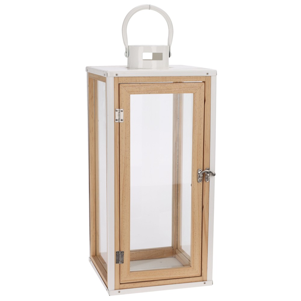 Lantern, M, glass/wooden, white/natural, 20x20xH45.5 cm