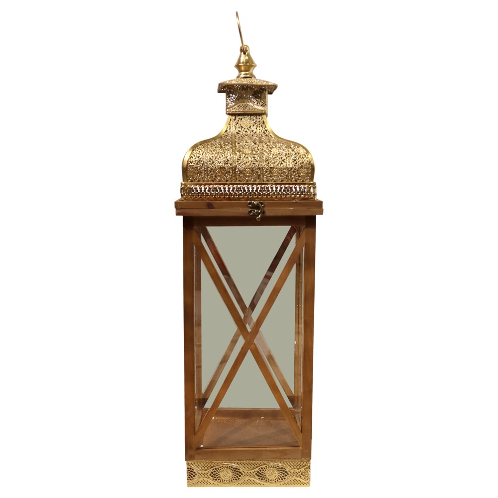 Lantern, wood/metal/glass, gold, 23.5x23.5xH79 cm