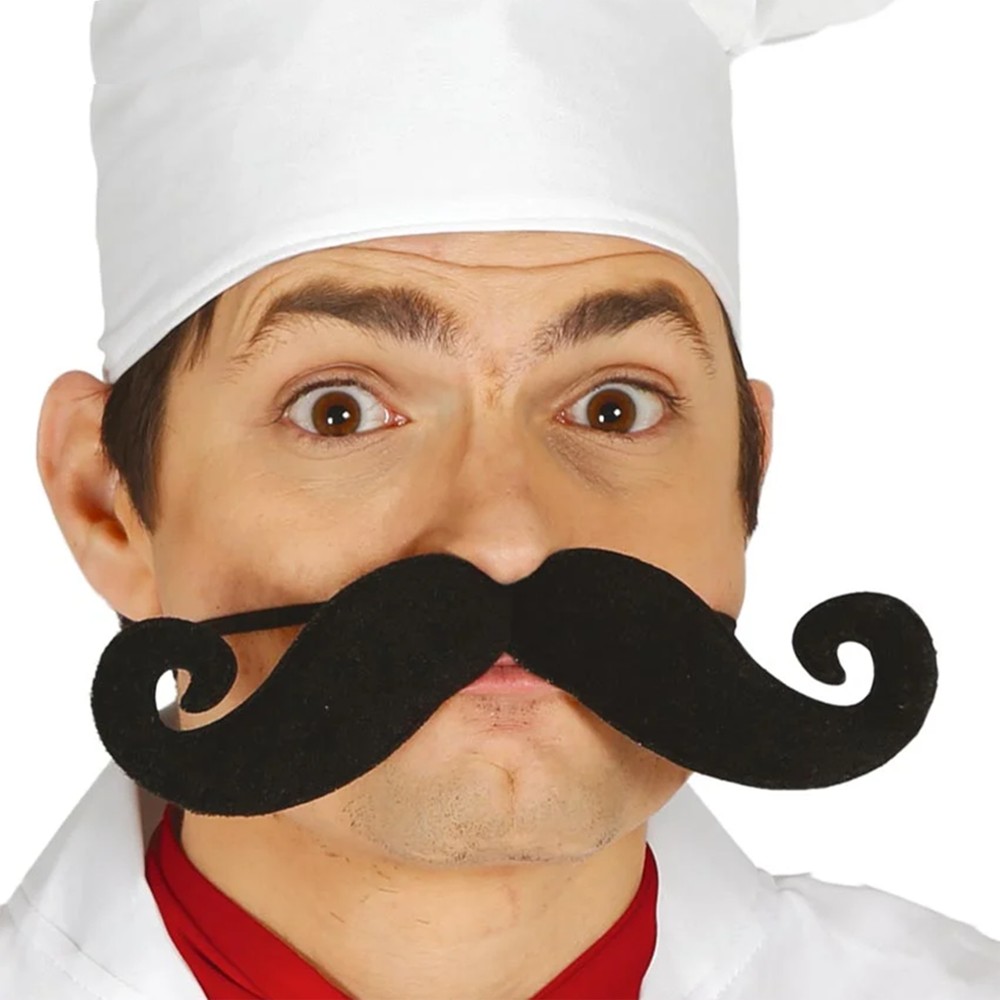Big mustache for Halloween costumes, in black color. It is used as an accessory for different Halloween or carnival outfits.