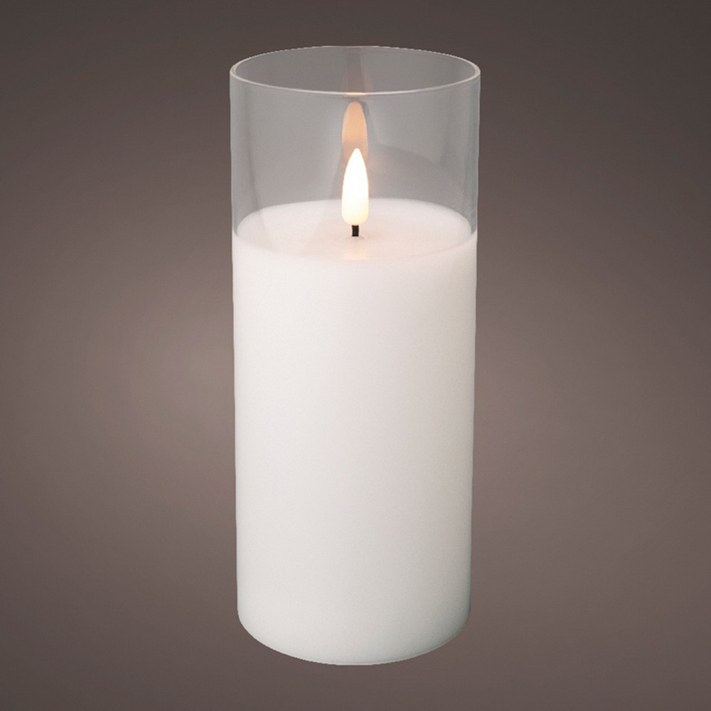 LED candle glass, flame effect with battery 2XAA, warm white, D7.5xH17.5 cm,white, indoor use. These are ideal for your home around the holidays. Christmas lights are all part of Christmas! Cheerful lights in these dark days makes the Christmas period complete!
