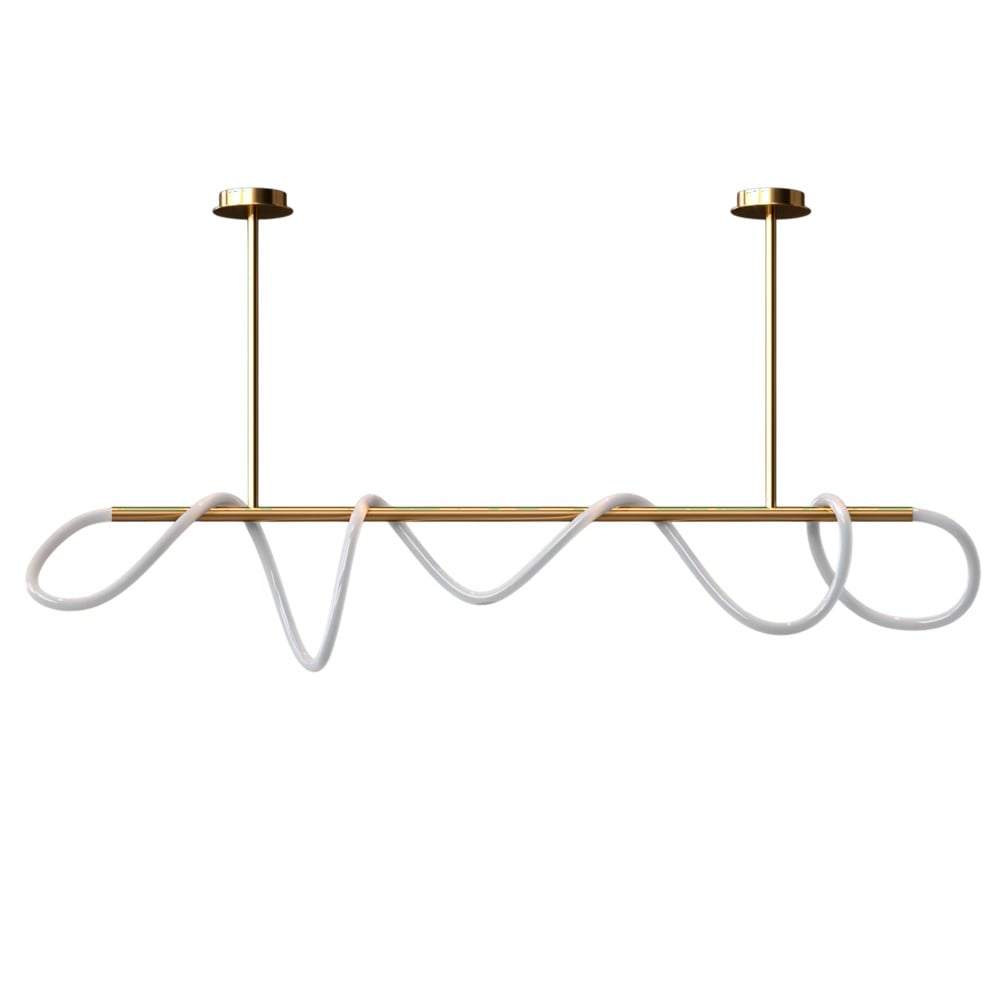 LED pendant light with 47W power, adjustable light temperature 3000–6400K and 3700 lm brightness. With a length of 80 cm and a height of 30 cm, made of aluminum and silicone with a gold finish, it combines efficient lighting with a modern and elegant design.