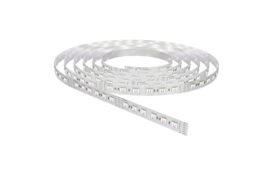 LED lighting strip, RGB+white, 12W/m, 24V, 1600lm/m. Thanks to its flexibility, it can be adapted to any position, solving the problem of dark spaces and adding beauty and elegance to the environment. LED lighting strips are the perfect solution for creating different configurations or contouring different elements of the interior space.