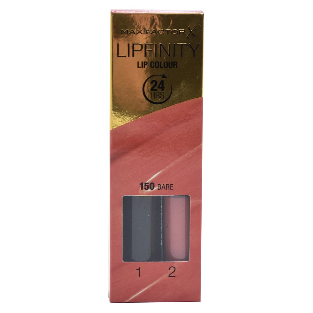 Makeup set of liquid lipstick, 150 Bare, in terracotta color, and moisturizing lip balm, in transparent color. The lipstick is equipped with a fine-tipped applicator and it is used to enhance the color of the lips and define the contours of the lips, with an effect that can last up to 24 hours. The moisturizing lip balm has a dermatologically tested hypoallergenic formula, which has a nourishing and soothing effect on the skin of the lips, and it can be applied after the liquid lipstick to protect the lip color and hydrate the lips. This product is lightweight and practical, it does not contain toxic ingredients that can be harmful to the skin and it is suitable for use on all skin types.