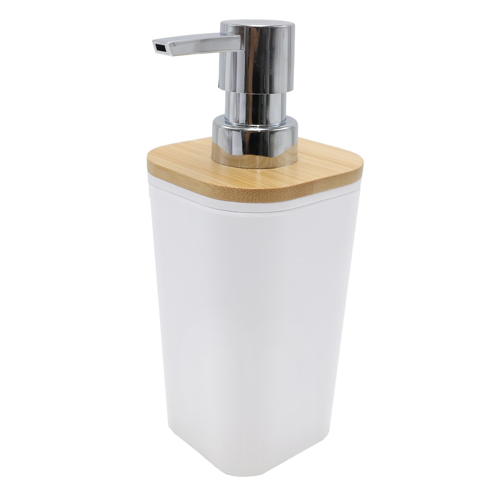 Liquid soap dispenser, plastic/bamboo, white/natural bamboo, 7.5x7.5xH17cm