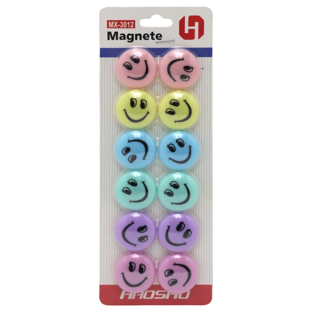 This set consists of 12 magnets with a "Smile" design, ideal for decorating and organizing whiteboards, refrigerators or any metal surface. Durable and practical, these magnets hold notes, documents or photos in place.
