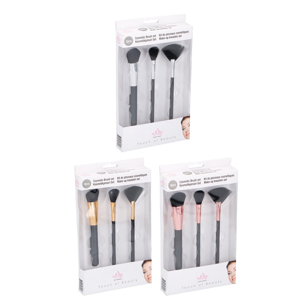 The brush set includes 3 makeup brushes, made of transparent plastic materials and synthetic fiber. Used to apply makeup and powder without irritating the skin. Each element that makes up the makeup brush set is very easy and practical to use. The products are very easy to clean and are very durable.
