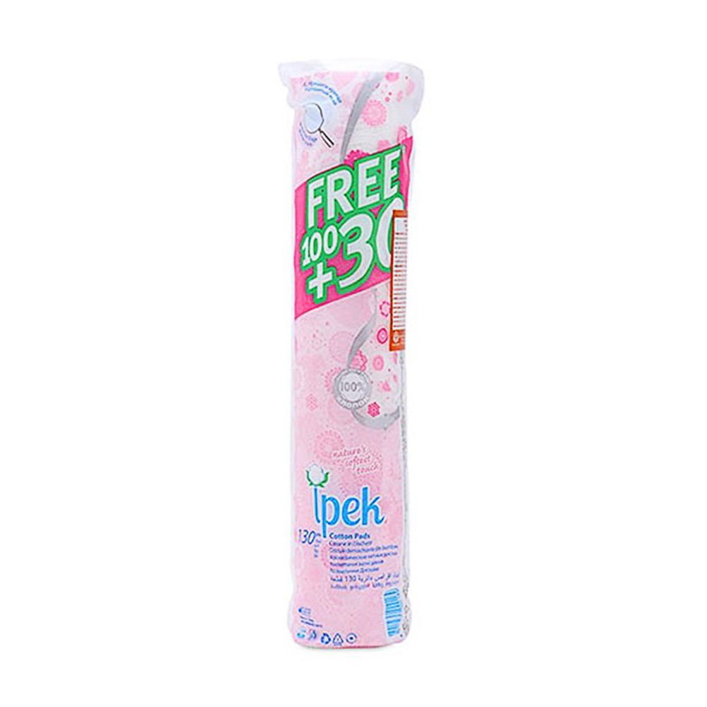 Makeup remover pads, Ipek, cotton, 68 g, white and pink, 130 pieces
