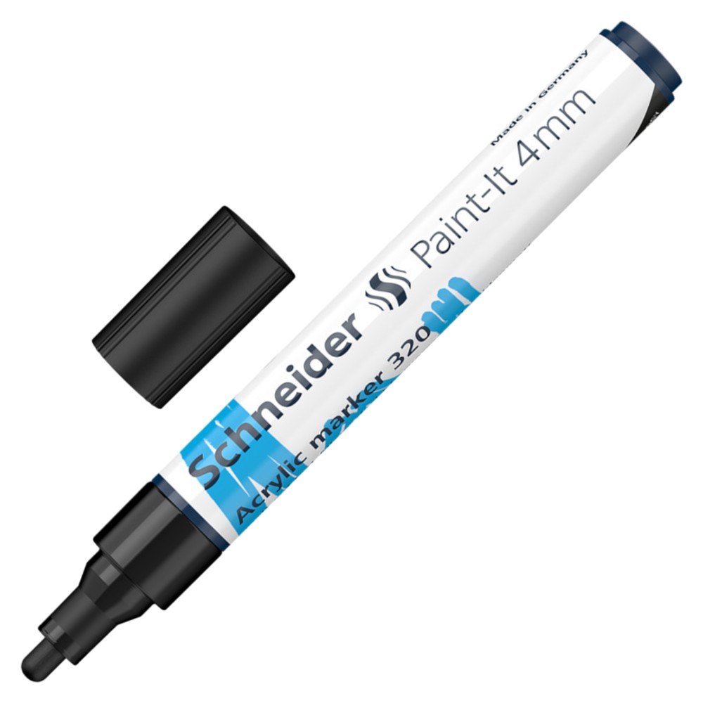 4 mm acrylic marker for creative work. Writing in black. The right tool for your every project. High coverage, quick drying and high color brilliance. The optimized paint is suitable for almost any substrate: wood, metal, paper, cardboard, stone, etc. The water-based and fragrance-free ink is perfectly controlled by a valve to suit your needs.
