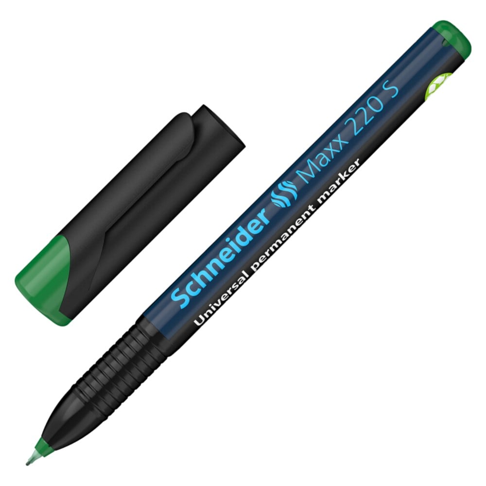 Universal marker, super fine line width (S) approx. 0.4 mm. Green paint color. Ideal for writing on transparencies (OHP), paper, plastic, glass, metal and many other surfaces. The line is intensely colored, dries quickly, resistant to water and light. The cap-off ink does not dry, even if the marker remains uncovered for 2-3 days.
