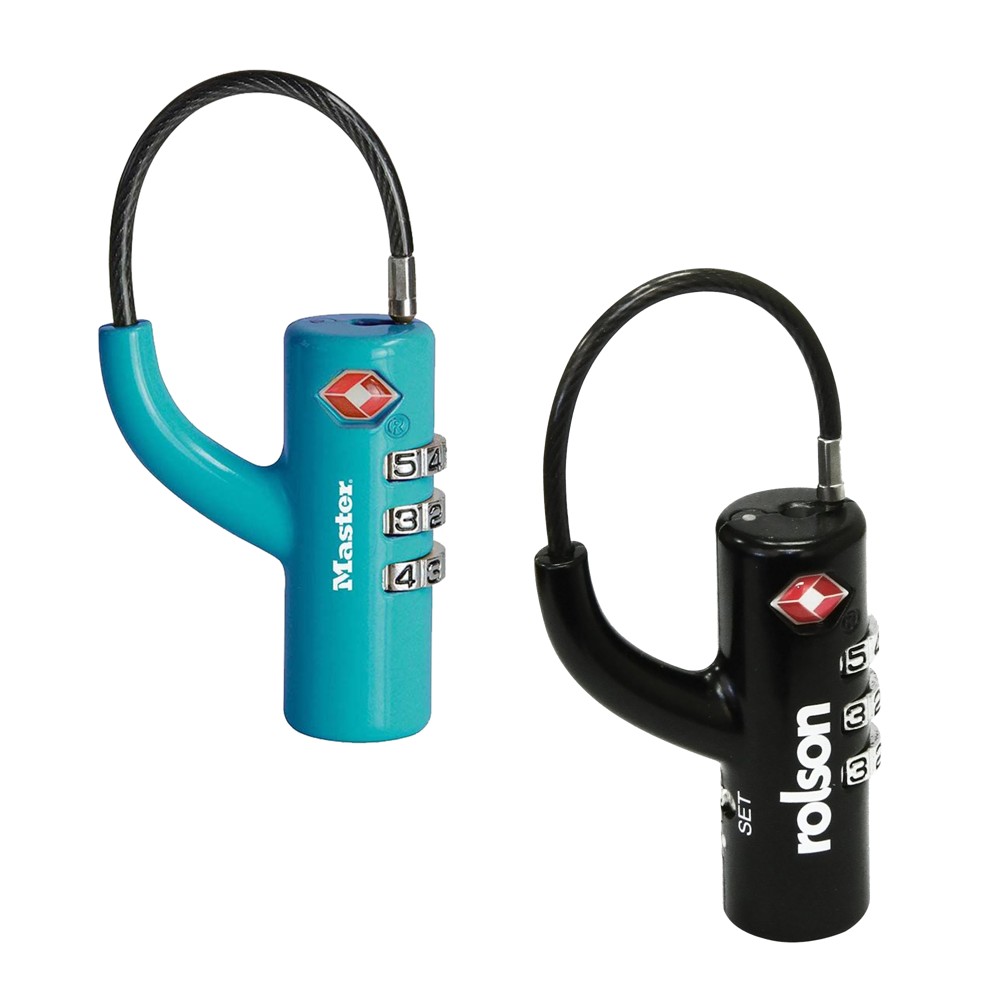 Masterlock padlock, Security level 3, 18mm diam padlock zinc body braided steel flexible cable with vinyl cover, diam 3mm, 3-digit resettable combination original design - blue painted body - tsa-acceptance, Luggage