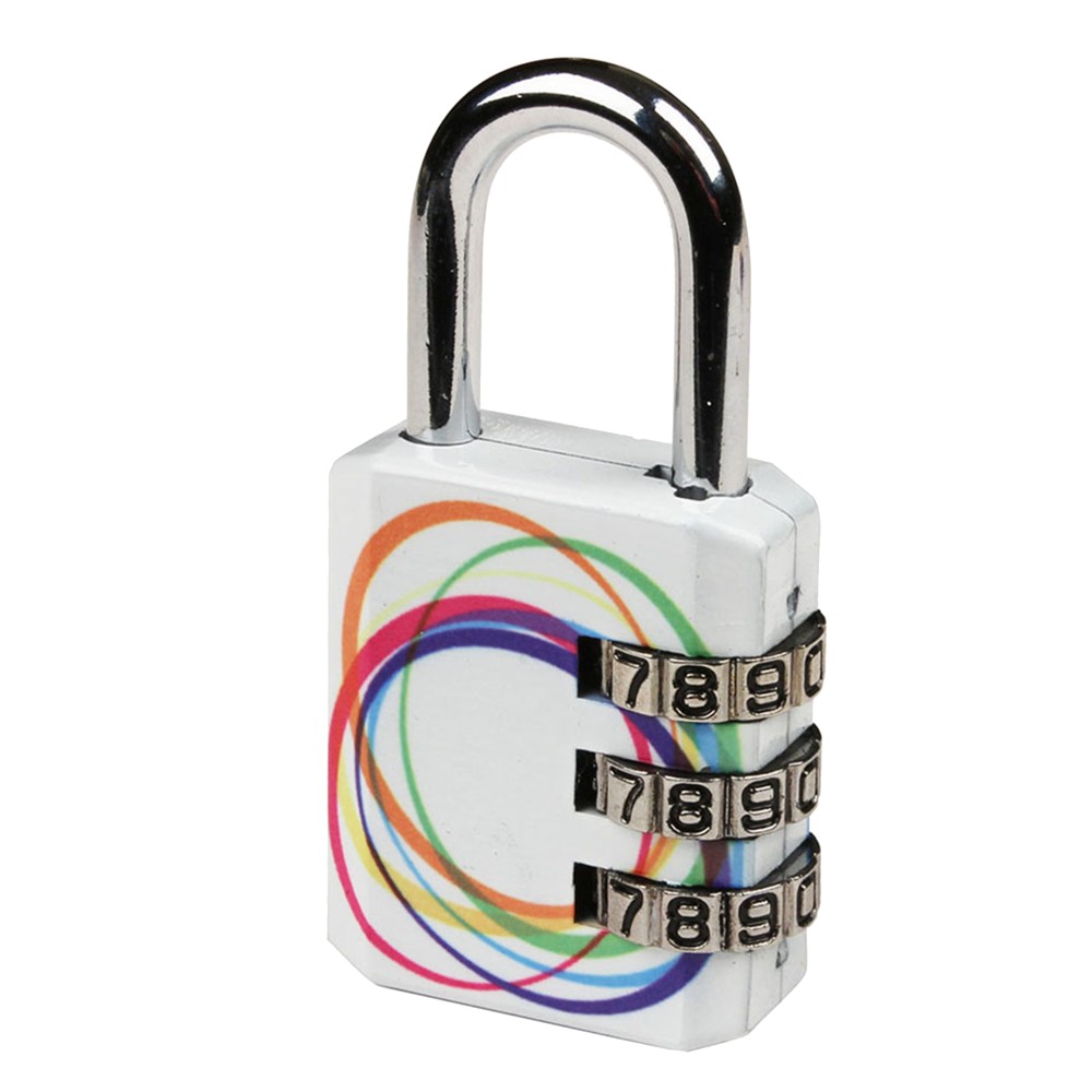 Masterlock padlock, Security level 4, 30mm zamak padlock - steel schackle 22mm, diam. 5mm-3 digit set-your-own combi - 4 assorted patterns, Luggage