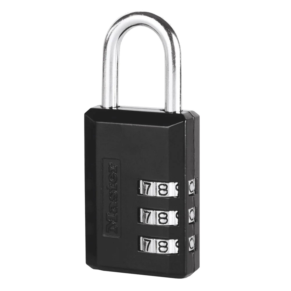 Masterlock padlock, Security level 4, 30mm zinc padlock w black vinyl cover- nickel-plated steel shackle and dialing wheels- 3 reset combi, Luggage