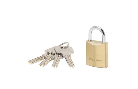 Masterlock padlock, Security level 5, 30 mm brass padlock- 17mm hardened steel shackle, 5mm diam. - high security 4 pins - reversible key, Indoor