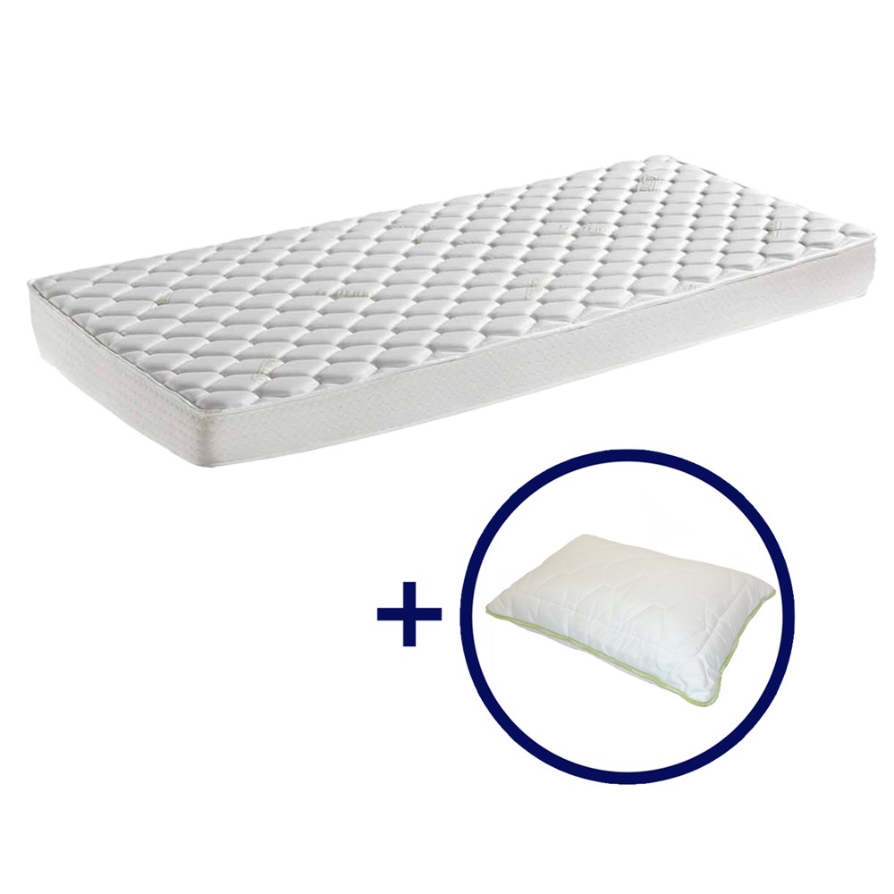Mattress with Dormeo foam Octaspring foam, high quality, with 3 zones with comfortable base height. 2 cm soft memory cover that fits your body. Perfect for the whole family. Total height: 18 cm - 16 cm height of the core and 2 cm height of the cover with Memory material, embroidered with silver fiber to keep away the unpleasant odors from your mattress. The set includes: Mattress and pillow (x1): 50x70 cm