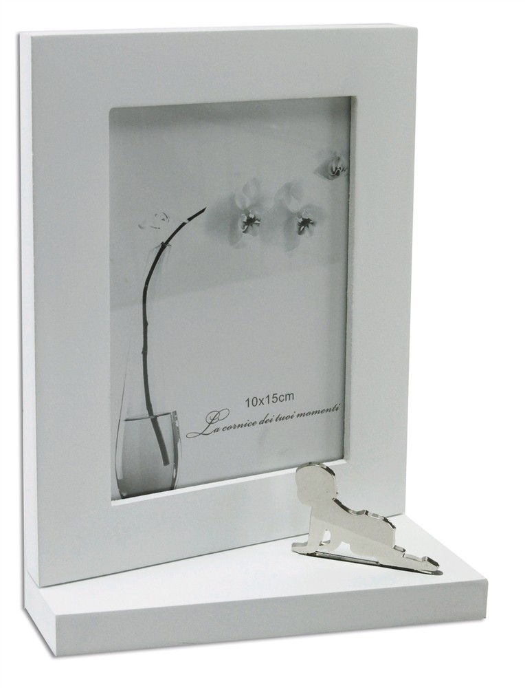 MDF PHOTO FRAME WITH BASE AND STANDING METAL FIGURE 10X15CM BABY