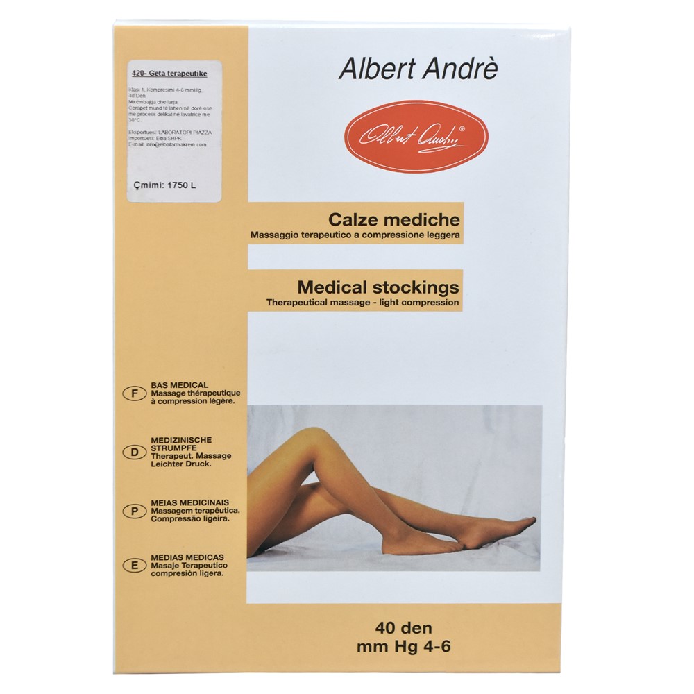 Medical compression stockings for women, model 420, made of elastic microfiber material, with a knitting density of 40 denier. The constituent material is soft, it makes the tights easy to wear and allows the foot to air out. How to use: The daily use preventive stockings (4-6 mmHg) have a low compression level and are suitable for use: 1. for the treatment of post-phlebitic syndrome, 2. for the treatment of mild venous insufficiency, 3. for the treatment of mild edema (trauma, distortions, collapse) of the lower arts, 4. as a preventive measure before and after surgery in patients at risk of phlebitis, 5. for the treatment of phlebitis, 6. as a complementary measure to sclerotherapy, 7. for the treatment of other pathologies according to the doctor's recommendation. Not to be used in cases of: 1. ulcers and wounds, 2. symptoms of dermatitis, 3. burns, 4. symptoms of allergy to the materials that make up stockings, 5. in all cases in which the doctor does not consider their use reasonable. Maintenance and washing: Frequent use and washing do not affect the functionality of the product. The stockings can be washed by hand or by a gentle process in the washing machine at 30°C. Should be dried away from any heat source (radiator, sun). Do not dry socks in the tumble dryer. Do not iron them.