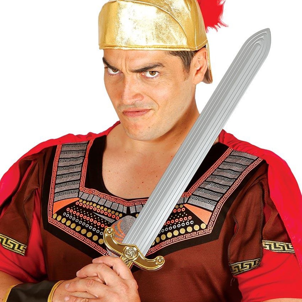 Medieval sword, made of plastic material, with dimensions of 60 cm, in gray color. It is used as an accessory for different Halloween or carnival outfits.