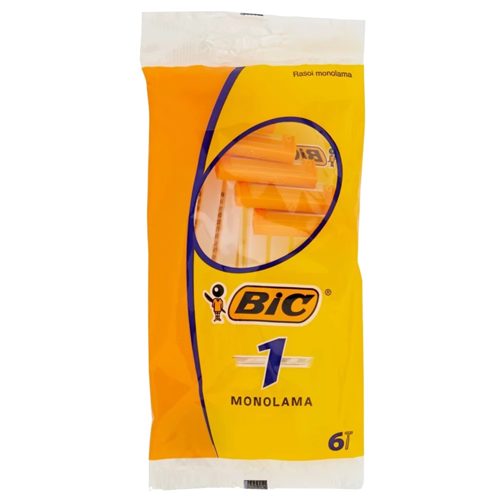 Men's disposable razor blade, Bic, plastic and stainless steel, 19.6x10.6x3.6 cm, orange, 6 pieces