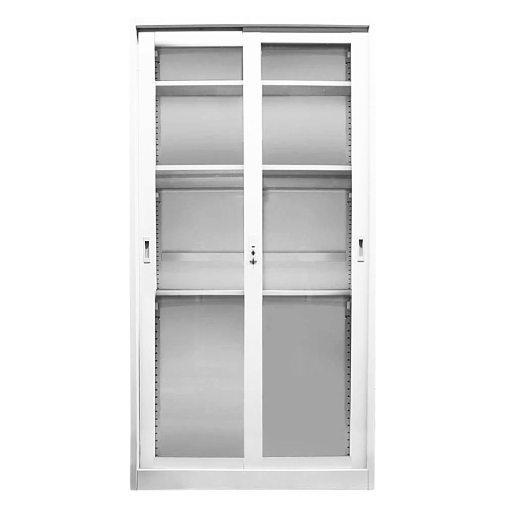 Metal filing cabinet, with 2 glass doors, 4 shelves, RAL 7035, H1850 x W850 x D390