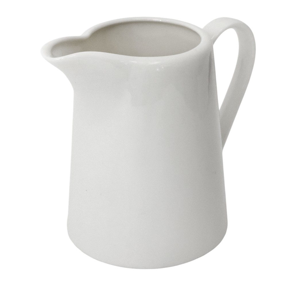 This elegant white ceramic milk or cream holder is perfect for serving during breakfast or afternoon coffee. With dimensions of Dia. 8xH10 cm, it provides ample space for a comfortable and organized serving. Its durable material and minimalist design make this holder a practical and aesthetically pleasing choice for any table.