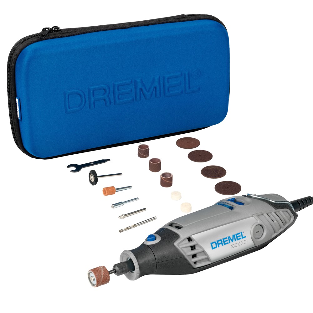 The Dremel 3000-15 is the perfect multi-tool with the new innovative EZ Twist tip from Dremel .Thanks to a new feature for tightening and loosening the collet when changing accessories it does not need a key anymore.Dremel 3000 provides the user with a comfortable grip thanks to the light housing. Use the Dremel attachments for decorative works: engraving flower pots, creating jewelery, furniture alterations, and also works with wood.The Dremel 3000 -has a great quality at an affordable price.