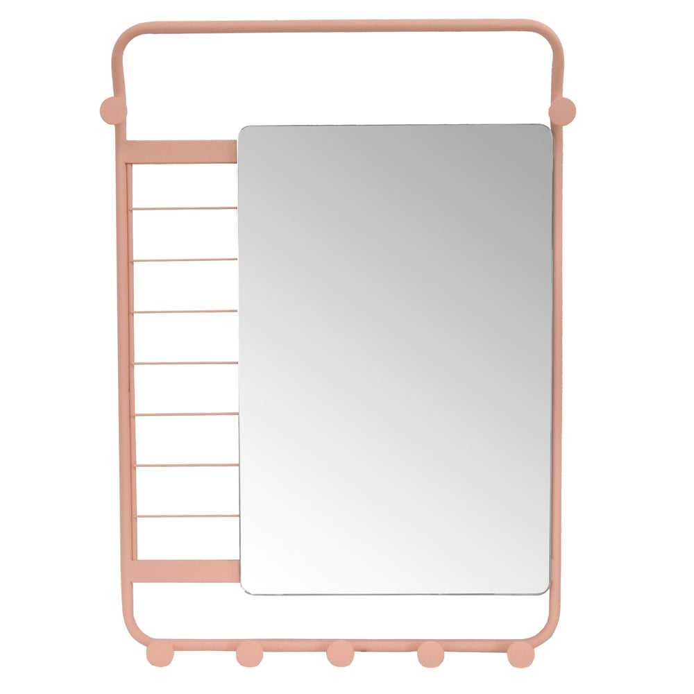 Perfect mirror for lovers of elegance, which will look perfect in the toilet of your home. Decorating the mirror with modern metal frame in pink creates a classic and calm atmosphere. Adding the clothes hanger to the bottom of it is perfect for hanging small towels.