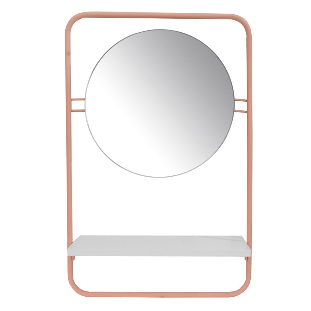Shelf wall mirror is always a welcome addition to any home environment. Decorating the mirror with modern metal frame in pink creates a classic and calm atmosphere. This mirror is great to place in the toilet of your home. It also consists of a shelf on which you can place small decorative or functional items.