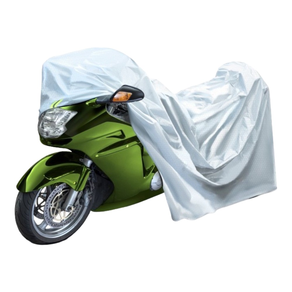 High-quality cover, with dimensions of 200x90x100 cm - perfectly fits various models of motorcycles and small scooters. The use of a special reflective layer protects the motorcycle from the sun and intense snow, as well as the inner layer of cotton and makes the cover not only high-quality, but also usable in any season. It is equipped with 6 reflective strips that ensure great visibility of the parked motorcycle.