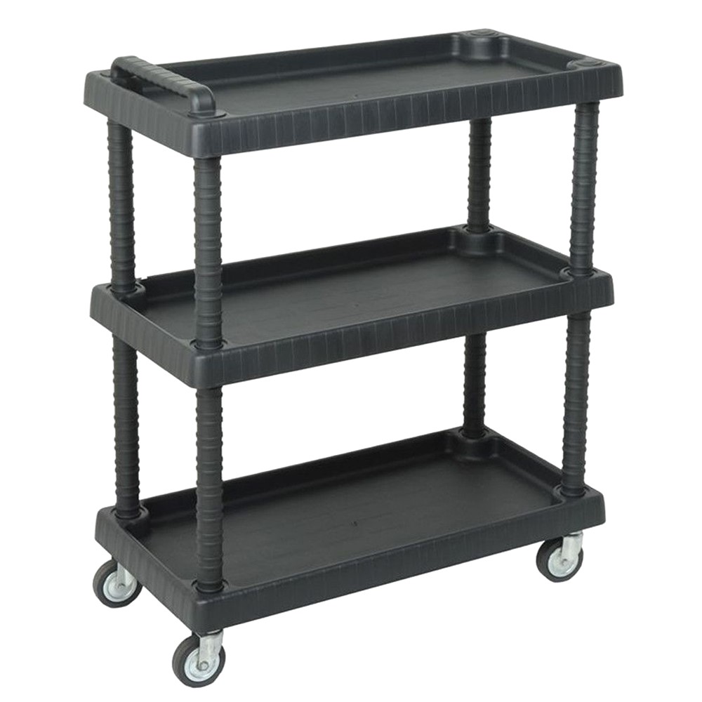 Manufactured from durable structures and designed with ample space for storing and assembling work tools intelligently, the side handles facilitate transport, which is performed thanks to the wheels at the base of the structure. The presence of 3 floors, increases the possibility of storage and organization of tools. The material of resistant plastic, avoids the process of degradation and rust over time. Ideal for professionals in the field of mechanics and woodworking.