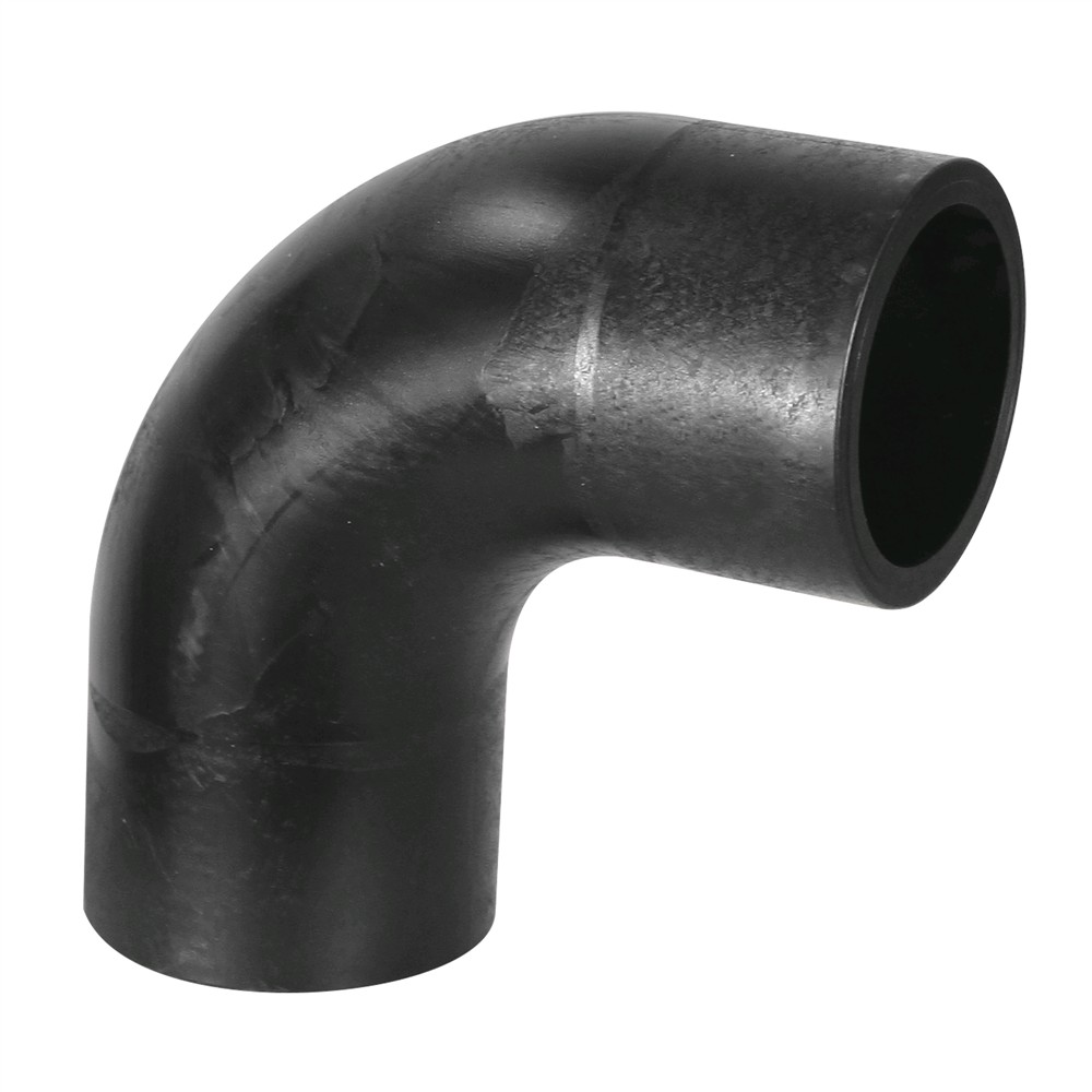 Elbow long spigot HDPE Ø 160mm with angle 90° used widely today in Europe for angular lines installations of water supply infrastructure and lines for the transport of natural gas. The elbow mounted by the method Butt-fusion. Elbow enables network returns 90° angle. For welding HDPE pipe with elbow used welding heat machinery which makes it possible merger of elbow pages and pipe and through pressure enables their union. Manufactured with European standards, resistant to corrosive materials, high resistance to deformation of land and resistant to pressure up to 16 Bar.
