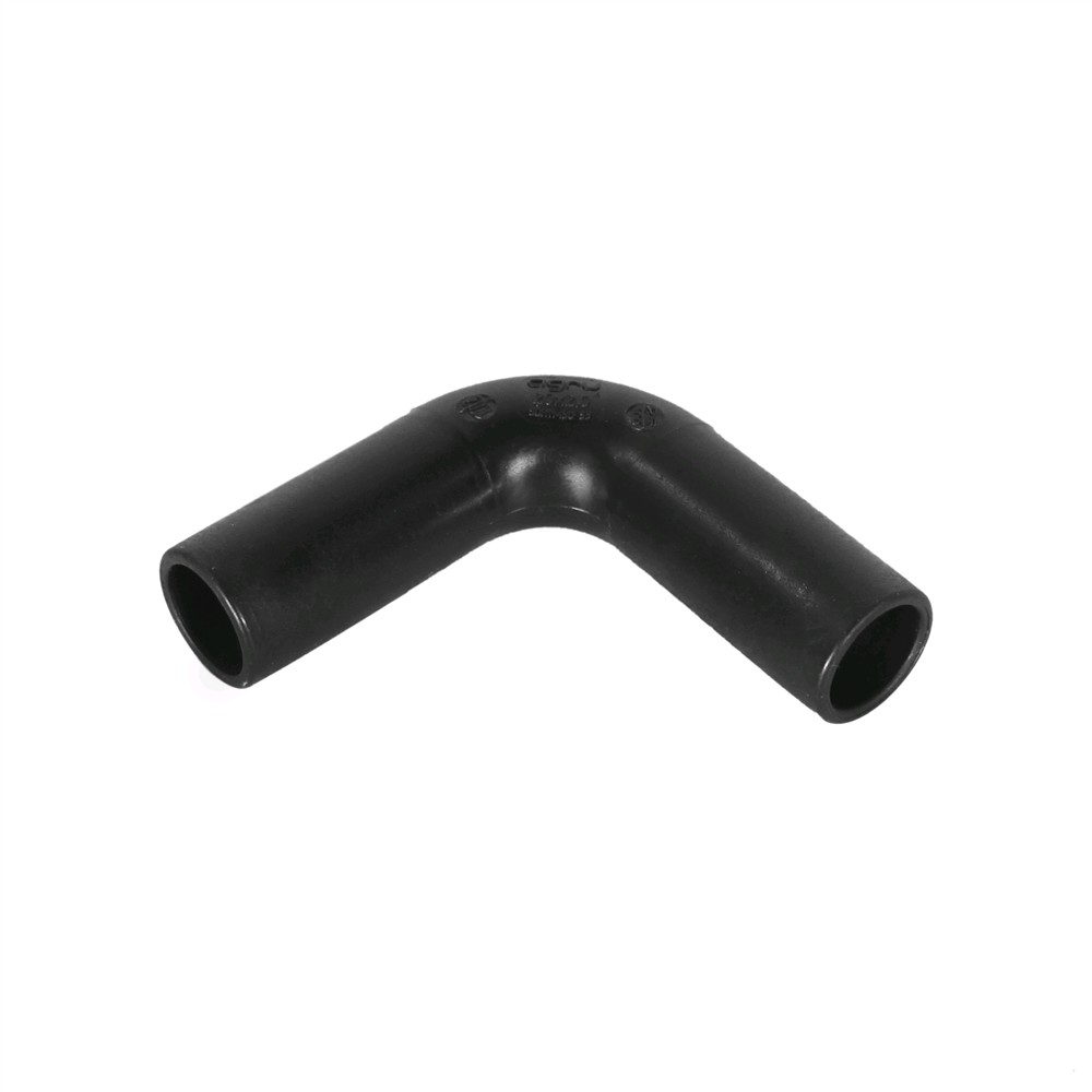 Elbow long spigot HDPE Ø 20mm with angle 90° used widely today in Europe for angular lines installations of water supply infrastructure and lines for the transport of natural gas. The elbow mounted by the method Butt-fusion. Elbow enables network returns 90° angle. For welding HDPE pipe with elbow used welding heat machinery which makes it possible merger of elbow pages and pipe and through pressure enables their union. Manufactured with European standards, resistant to corrosive materials, high resistance to deformation of land and resistant to pressure up to 16 Bar.