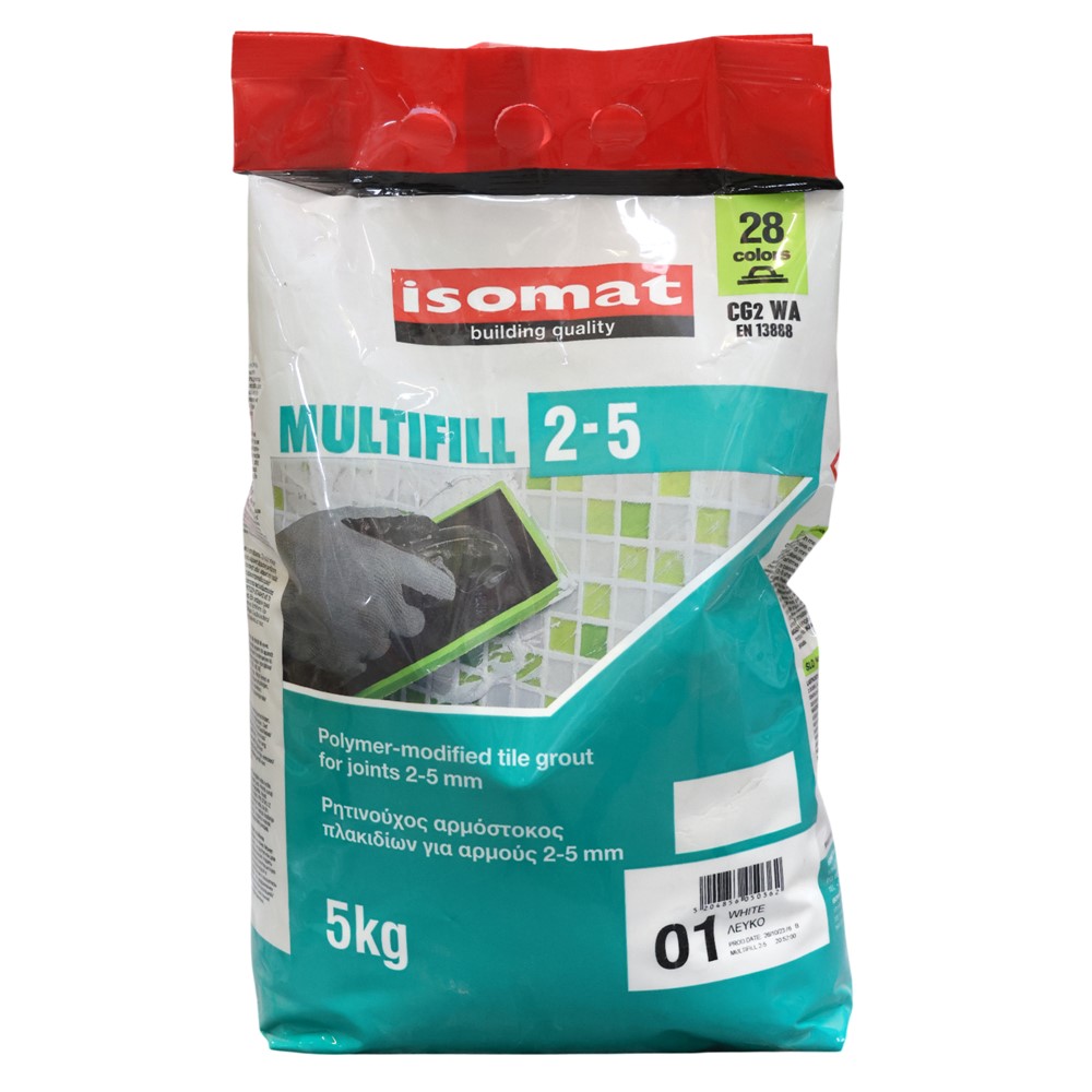 MULTIFILL 2-5 is a cement-based, colored tile grout. It offers high mechanical strength and color stability. Suitable for joint width 2-8 mm. It is classified as type CG2 WA tile grout according to EN 13888. MULTIFILL 2-5 is used for pointing tile joints on walls or floors, for indoor and outdoor applications.