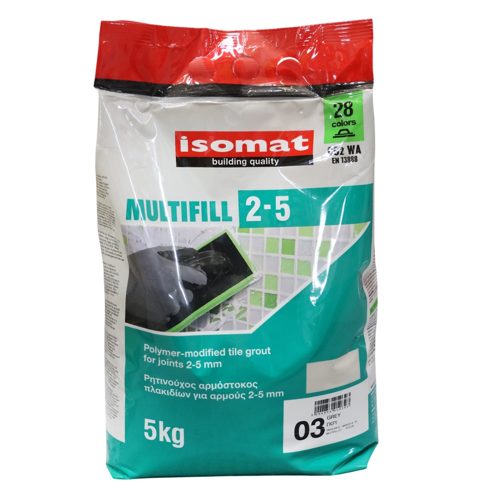 MULTIFILL 2-5 is a cement-based, colored tile grout. It offers high mechanical strength and color stability. Suitable for joint width 2-8 mm. It is classified as type CG2 WA tile grout according to EN 13888. MULTIFILL 2-5 is used for pointing tile joints on walls or floors, for indoor and outdoor applications.