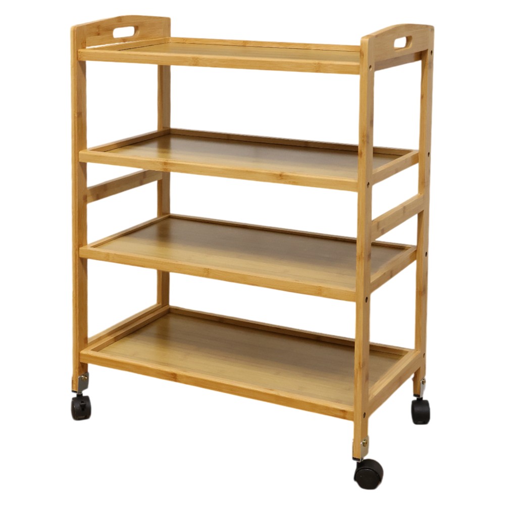 The multifunctional shelf ''Hinamori'' offers the ideal solution for your kitchen environment without compromising on style and elegance. Designed in wood material and in the color of natural wood, this shelf with 4 shelves adds to the practicality of your environment. Equipped wheels, this shelf is easy to store and transport.