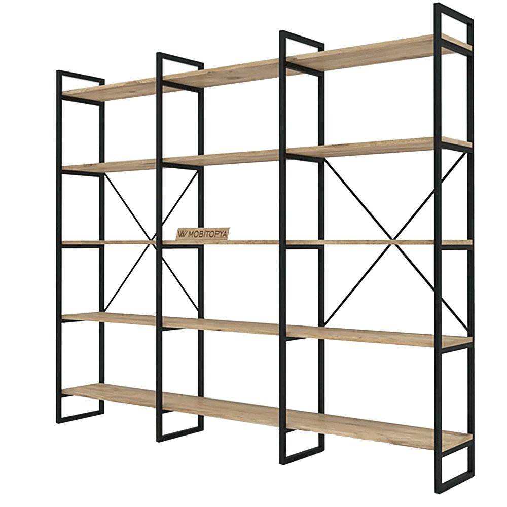 Multifuncional shelf, Nilamu, 5 shelf, metal/melamine, black/brown, 200x34xH170 cm