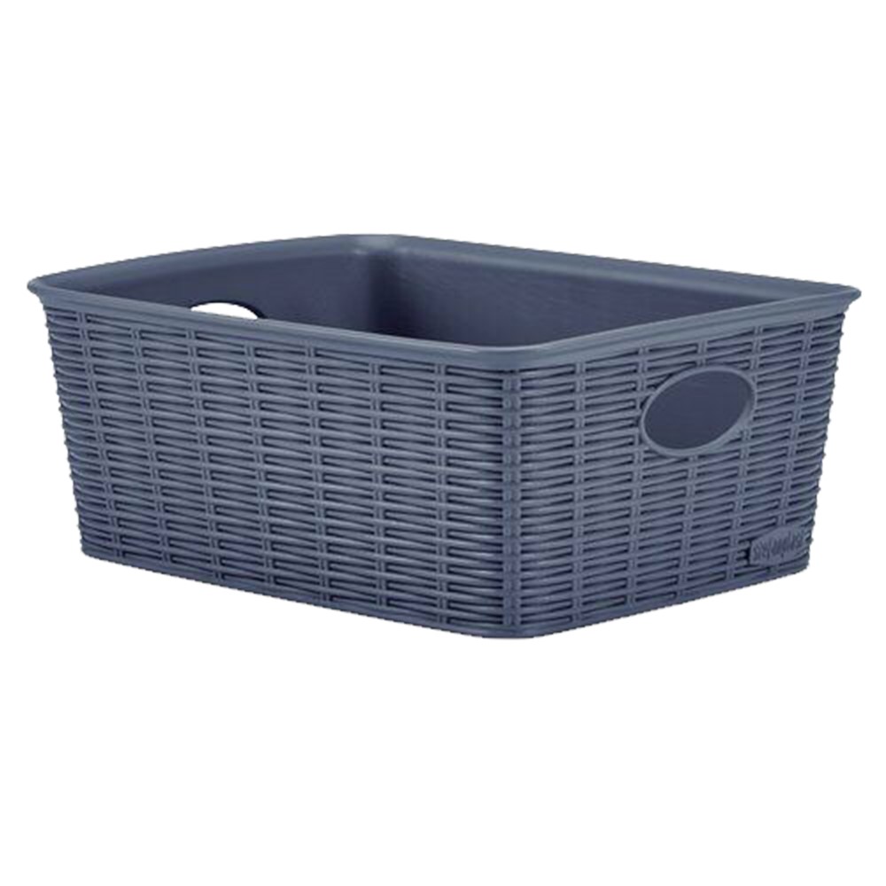 The rectangular basket from the Elegance line, in blue navy color and measuring 25x19.5xH10 cm fits in the bathroom, in the living room or in the kitchen. The basket is an excellent alternative to wicker baskets, which means it has a plastic material, to give the idea of knitting but with a simple and smooth structure. This modern design combined with utility values makes the basket fit perfectly into the arrangement of any interior space.