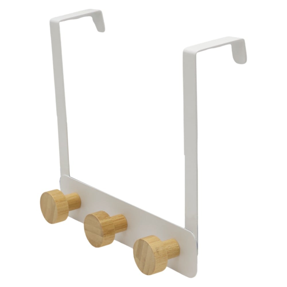 Multifunksional hanger, 3 hooks, metal/wood, white/brown, 19.6x18 cm