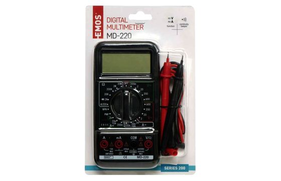You're reviewing:Multimeter, Emos, 2–600 V AC, 2 mA – 10 A AC, 200 mV – 600 V DC, 2 mA – 10 A DC, 200 Ohm – 20 Mohm, 1x9 V