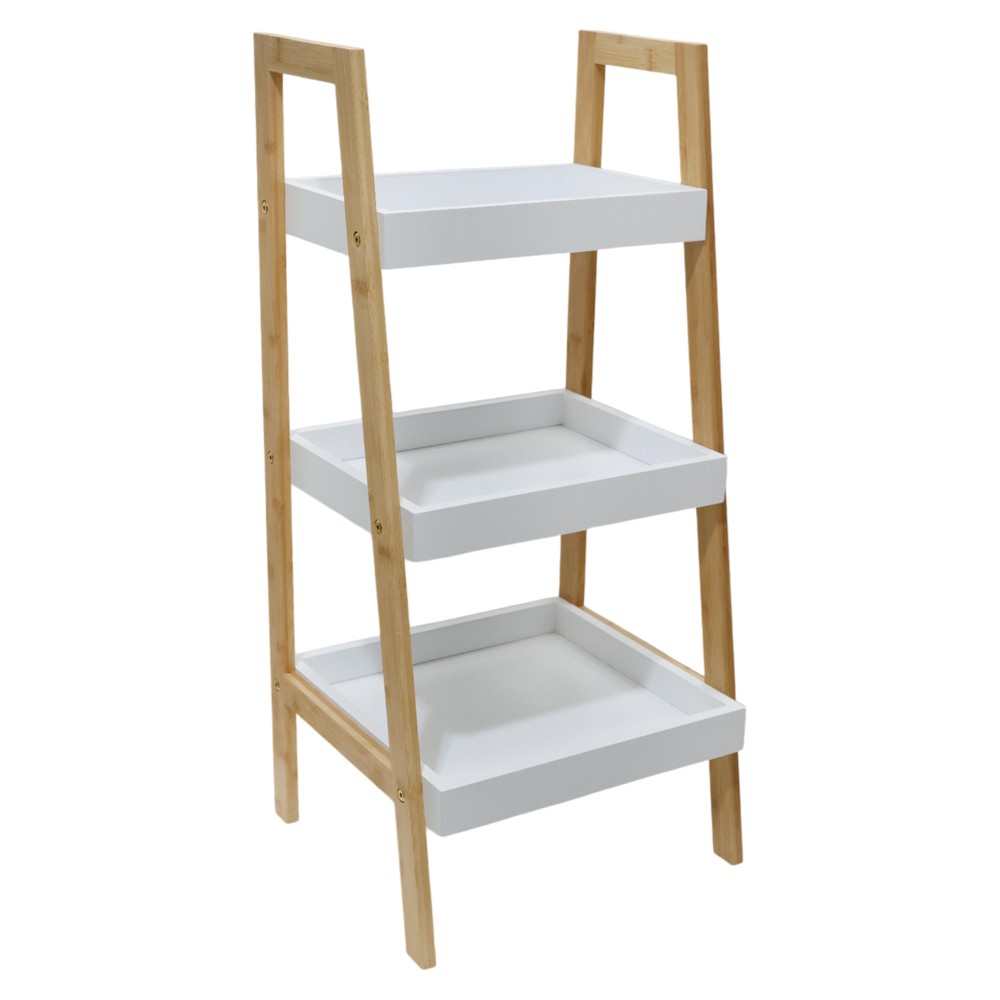 The multifunctional shelf "Nemuro" designed in a natural bamboo structure and white MDF shelves is the ideal solution for a modern, minimalist but above all practical environment. With three usable levels for storing your belongings and dimensions, height 78 cm x length 34.5 cm x width 31 cm.