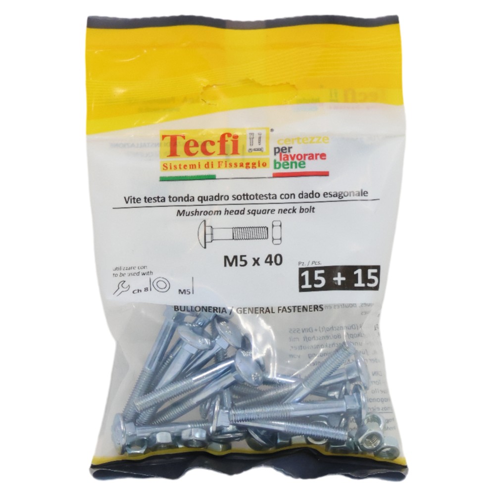 Mushroom head square neck bolt w/hex nut, 4.8, zp, M5x40mm, Bag 15