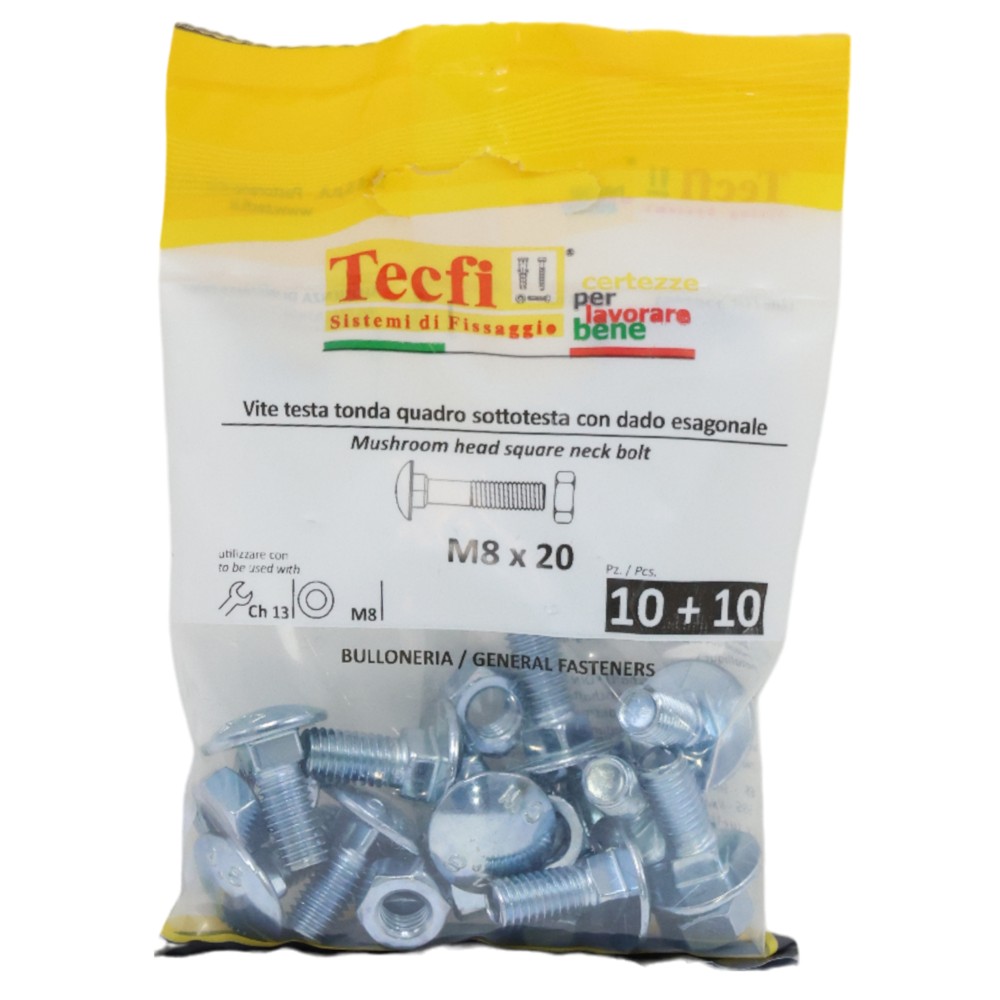You're reviewing:Mushroom head square neck bolt w/hex nut, 4.8, zp, M8x20mm, Bag 10