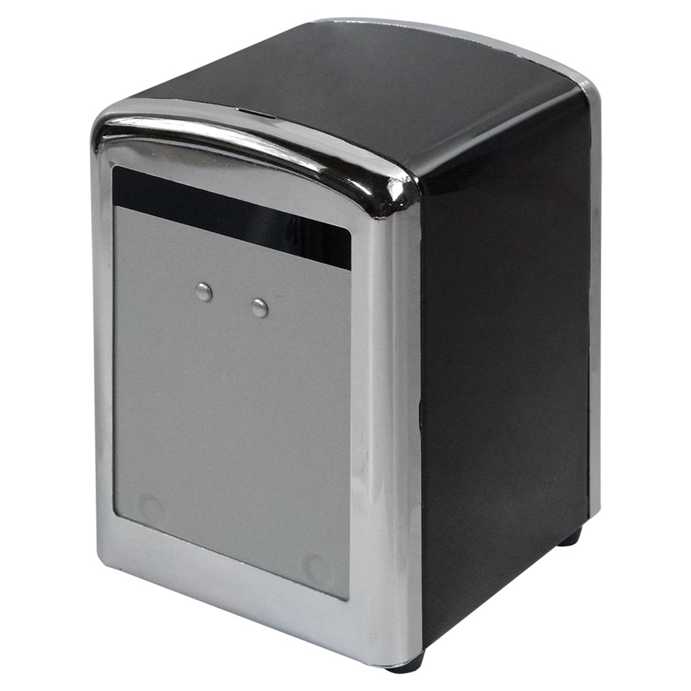The branded or not BLACK NAPKIN cardboard holder with a fine design, made of stainless steel and a perfect size of 10x9x13 cm, is very practical accessory for any Restaurant, Bar or Hotel.