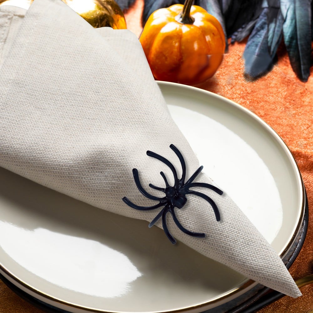 If you are organizing a Halloween party, this napkin holder with a spider design will make the table decor even more special. It is made of metallic material in black color.
