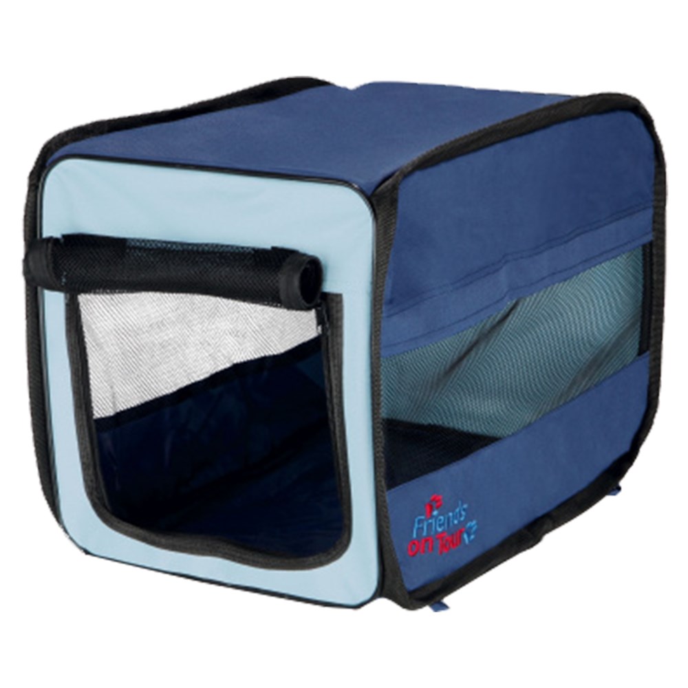 Transport carriage to keep your animal in the car in a safe place. It has a large interior space to ensure the comfort of animals. With a special design fits most luggage of each car. It is produced with first quality, strong and resistant materials. With anti slip slides for easy transport. With its large front door, along with side blinds, it ensures a good circulation of air inside the carrier, providing a proper ventilation. The front opening door has security closure.