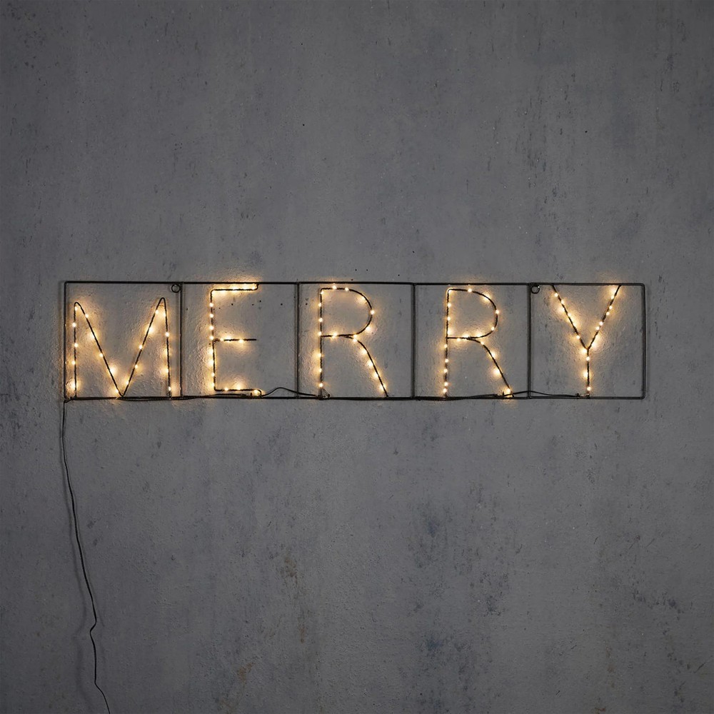 Neon light with Christmas motifs, MERRY, IP44, 100 led, warm light, l101xw2xh20cm