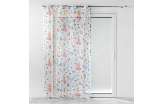 Net curtain for children with rings, 100% polyester, white with a cartoon character, 140x240 cm