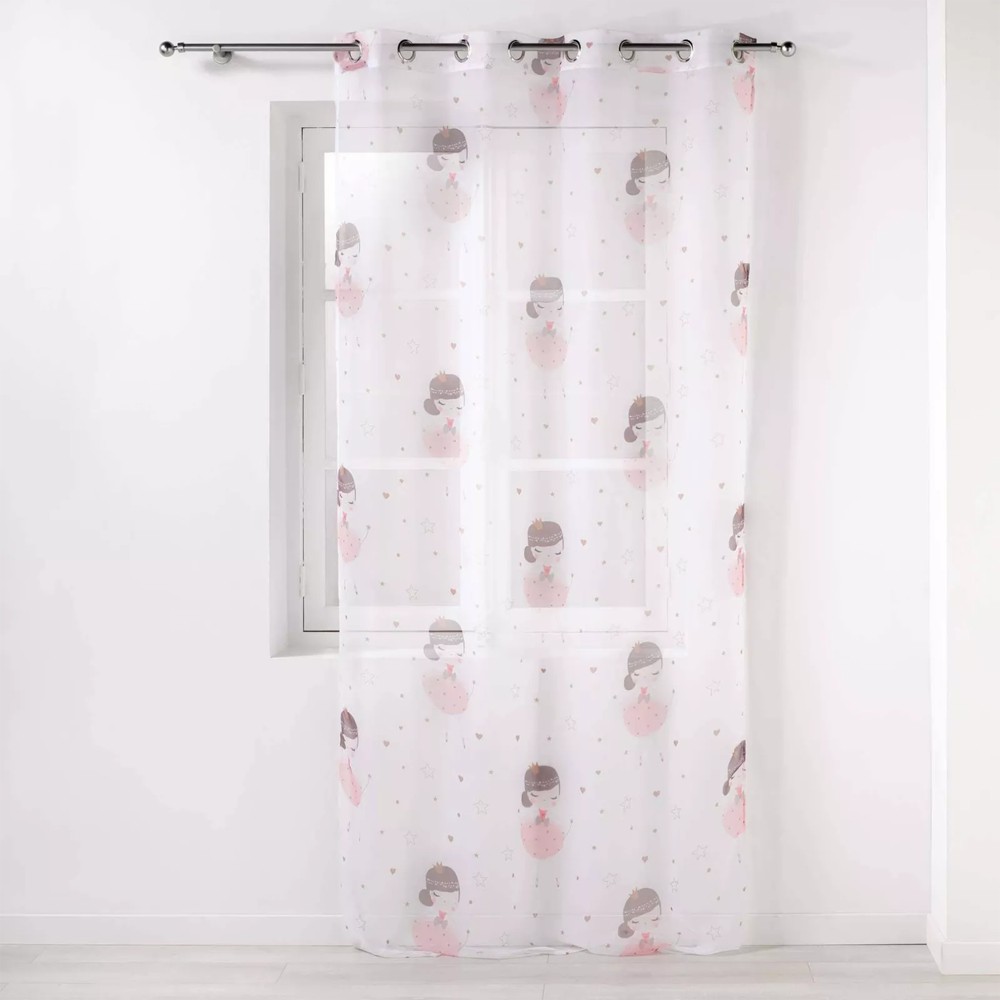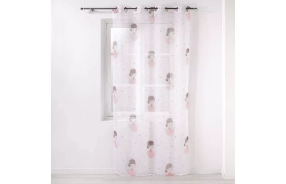 Net curtain for children with rings, 100% polyester, white with a cartoon character, 140x240 cm