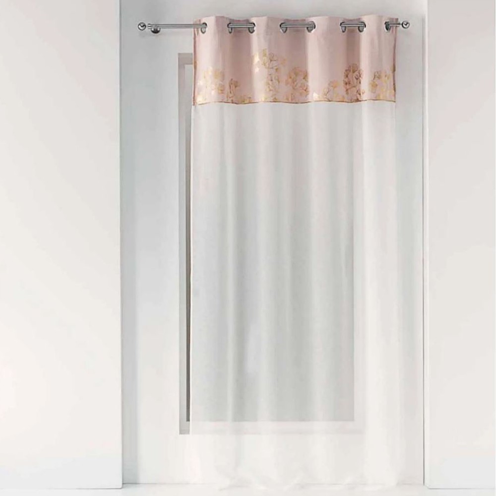 Net curtain with rings, 100% polyester, white and pink, 140x240 cm